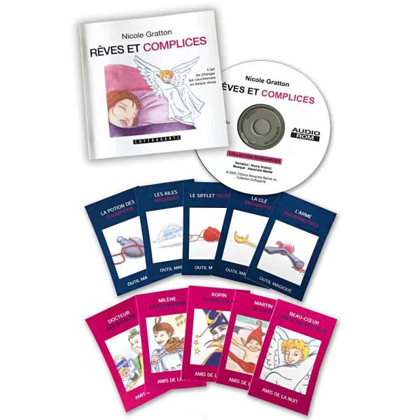 Ensemble livre CD, et 10 cartes (enfant de 2 à 9 ans) un petit guide audio rempli d’exercices tout simples pour aider à faire des beaux rêves et mieux dormir.